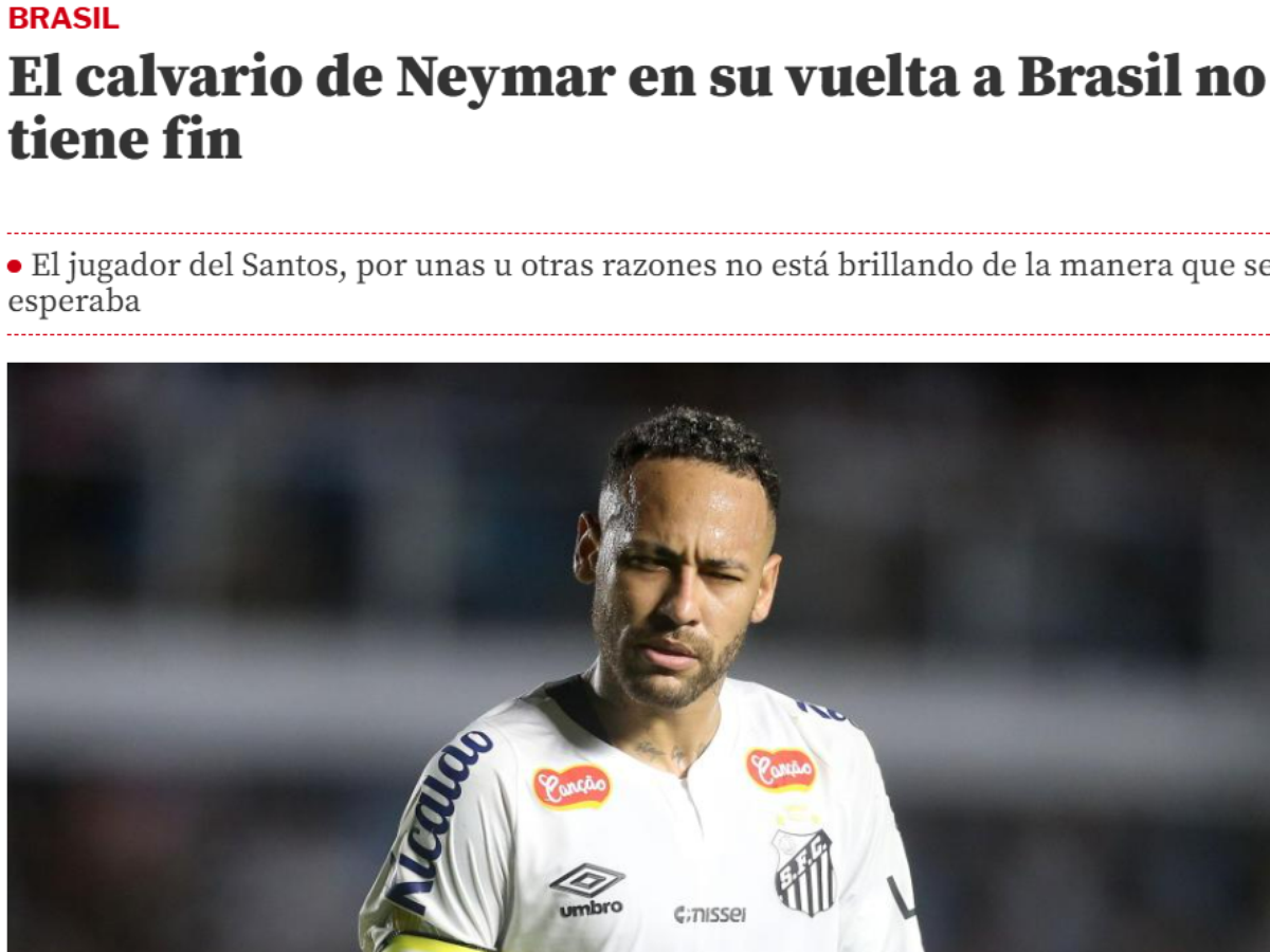 Matéria do jornal espanhol Mundo Deportivo critica o desempenho e a condição física de Neymar após seu retorno ao Santos, destacando lesões recentes e polêmicas fora de campo.