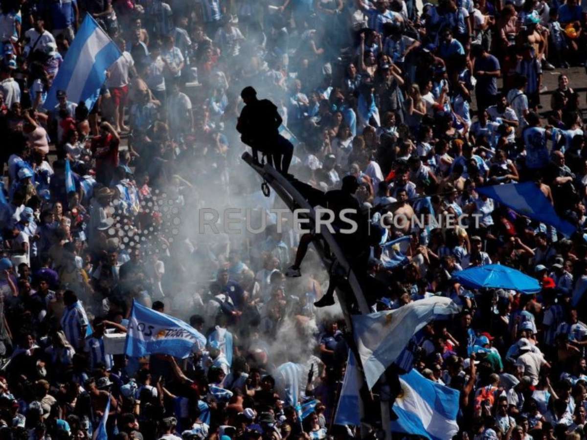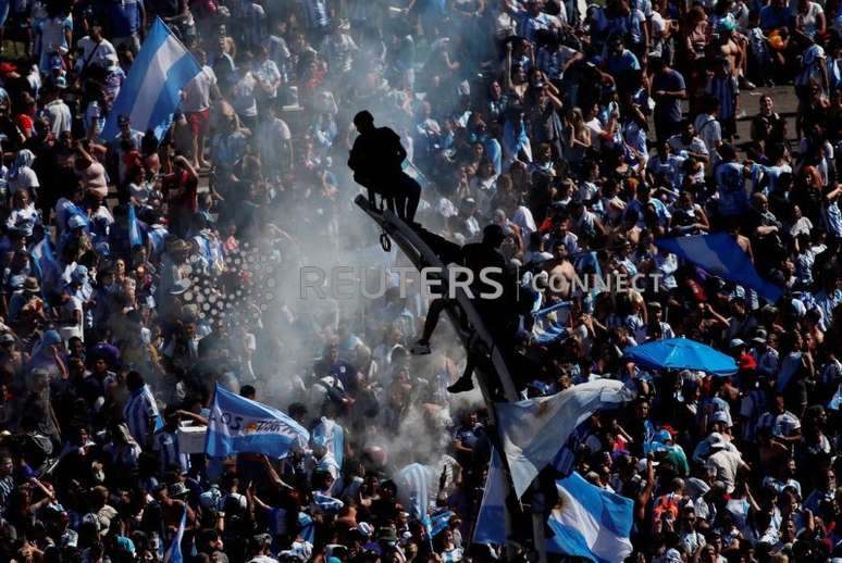 Nas ruas da capital os argentinos festejaram até a madrugada desta segunda-feira. Eles subiram em pontos de ônibus e postes de luz, tocaram buzinas e tambores e soltaram fogos de artifício no céu noturno. Alguns até escalaram o alto monumento do Obelisco.