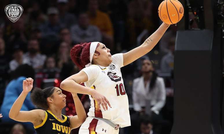 A Universidade Carolina do Sul chegou à decisão do March Madness da NCAA de forma invicta, com 37 vitorias. E a vaga como finalista foi conquistada com a equipe de Kamilla Cardoso atropelando na semifinal o NC State por 78 a 59 na sexta-feira (5). Natural de Montes Claros-MG, a pivô ganhou seu segundo título em menos de um mês, pois foi personagem central da conquista da Conferência Sudeste (SEC), no começo de março.