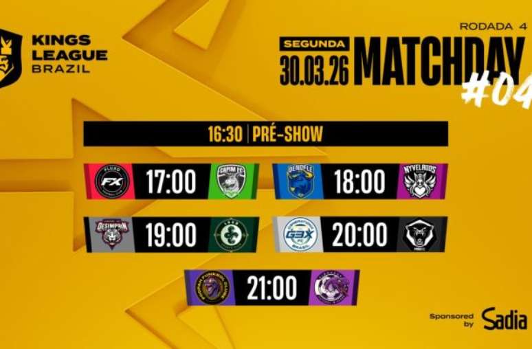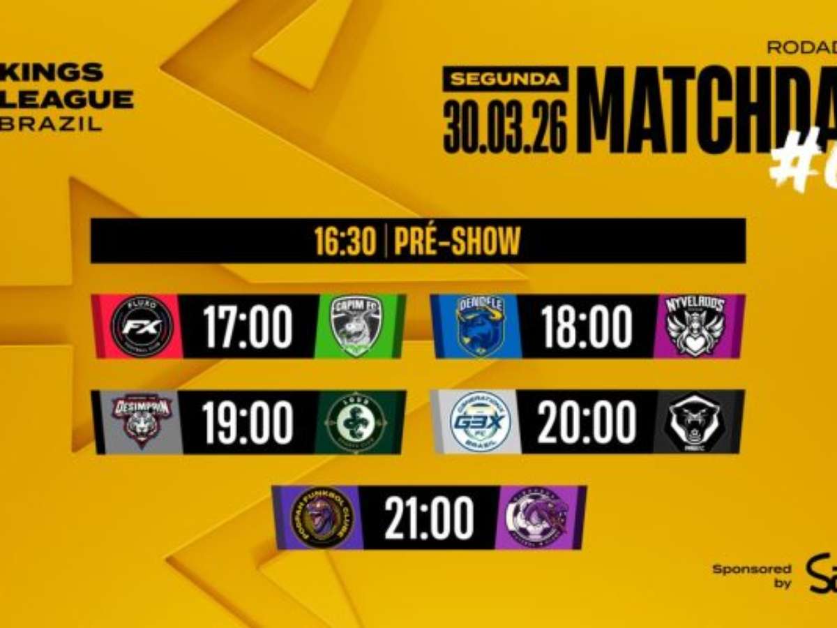 A quarta rodada da Kings League Brasil chega nesta segunda-feira (30/3), à partir das 17h, cercada de expectativa e com partidas que podem mexer diretamente na parte de cima e de baixo da tabela. O dia reserva confrontos equilibrados, ataques em alta e equipes pressionadas por resultados.