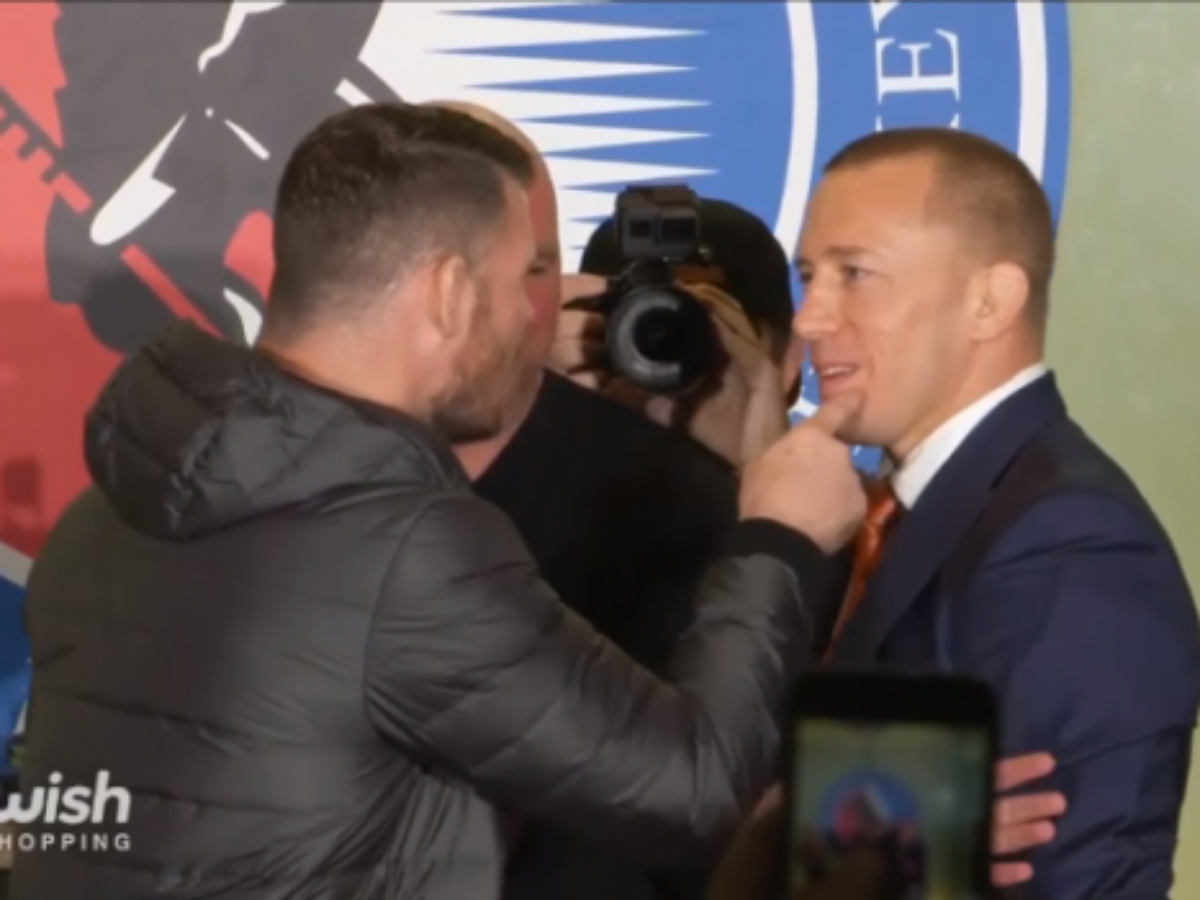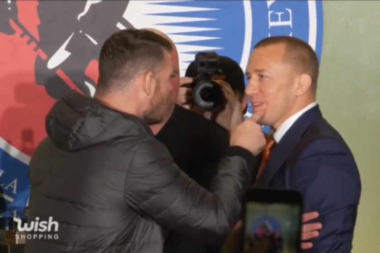 Na hora da tradicional encarada promocional, Bisping tocou o queixo de St-Pierre e recebeu um empurrão de Georges. Eles tiveram de ser separados pelo presidente do UFC Dana White.