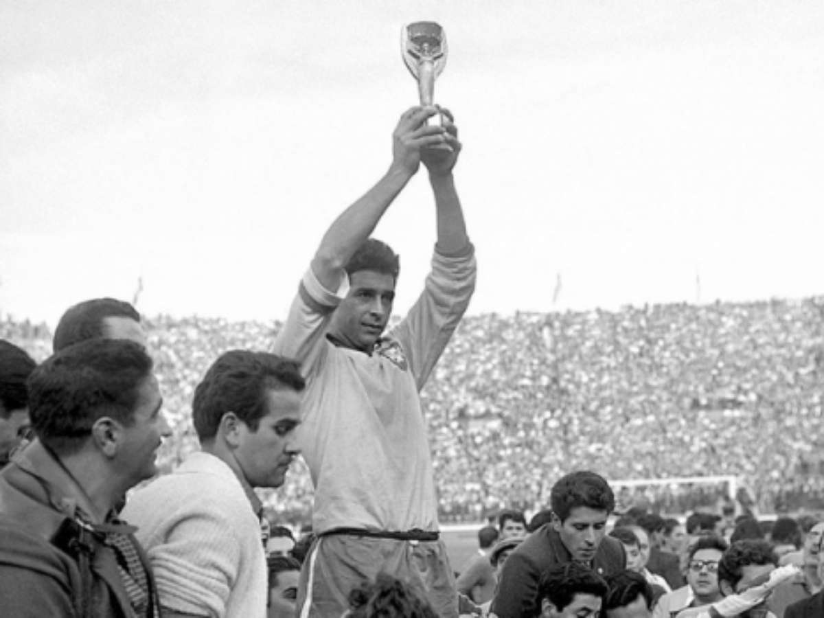 Coube a Mauro Ramos de Oliveira, o capitão, a honra de erguer da taça Jules Rimet em Santiago após a grande final.