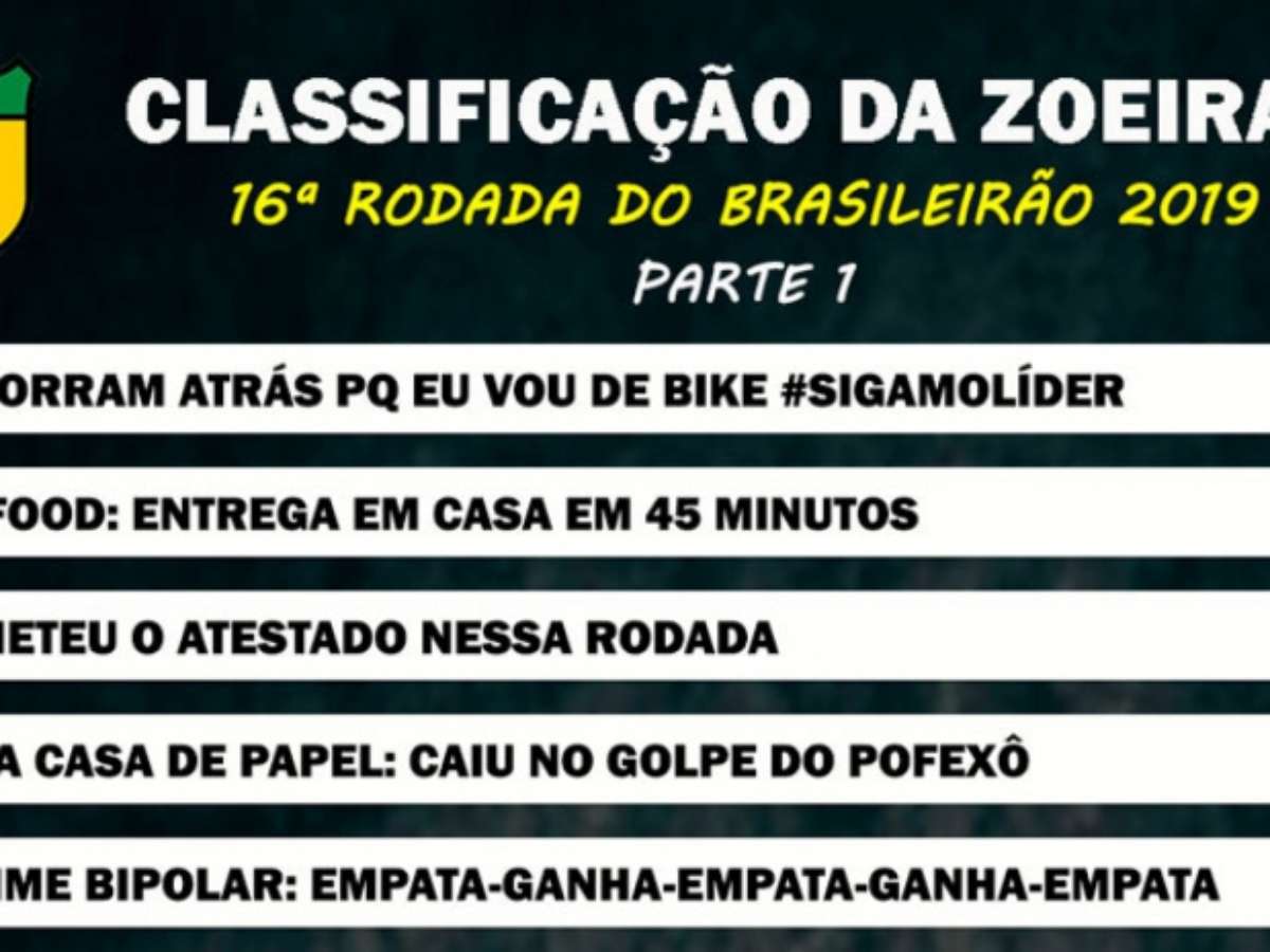 Classificação da Zoeira - 16ª rodada do Brasileirão 2019