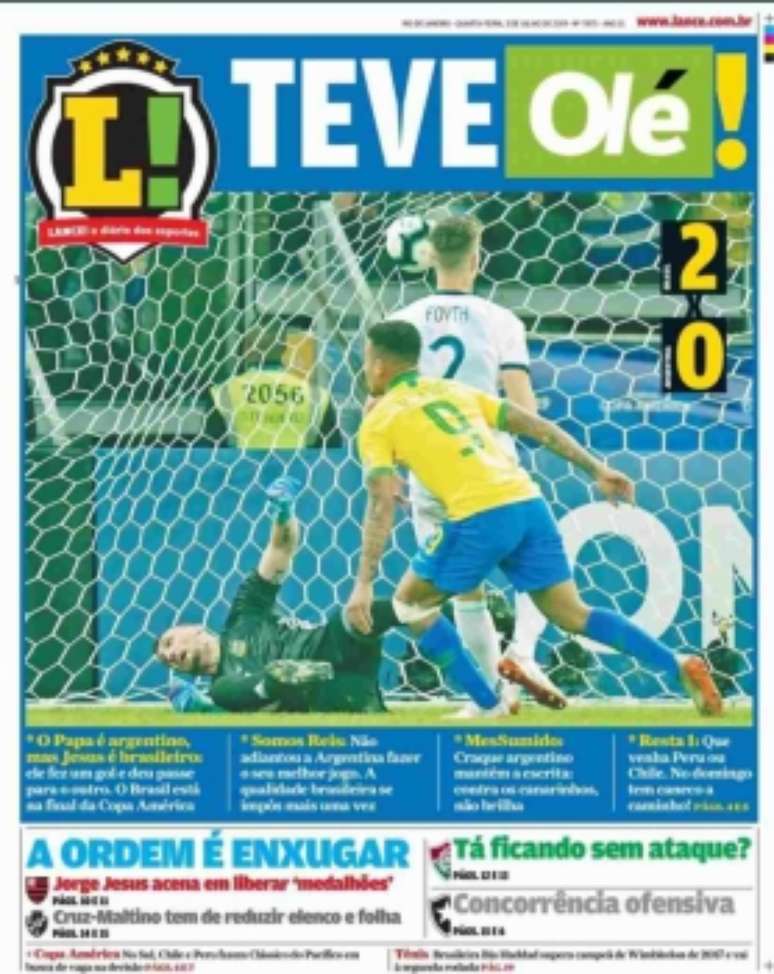 O LANCE!, maior diário esportivo do Brasil, estampou em sua manchete a frase "Teve Olé", usando na palavra olé o logotipo do diário argentino de mesmo nome. O diário Olé é famoso por suas capas provocativas, sobretudo contra os brasileiros. Algumas até de gosto discutível como quando, numa Eliminatória Sul-Americana, estamparam uma mulata de biquíni para apresentar um jogo Argentina x Brasil com a manchete perguntando "Tem programa para hoje?".