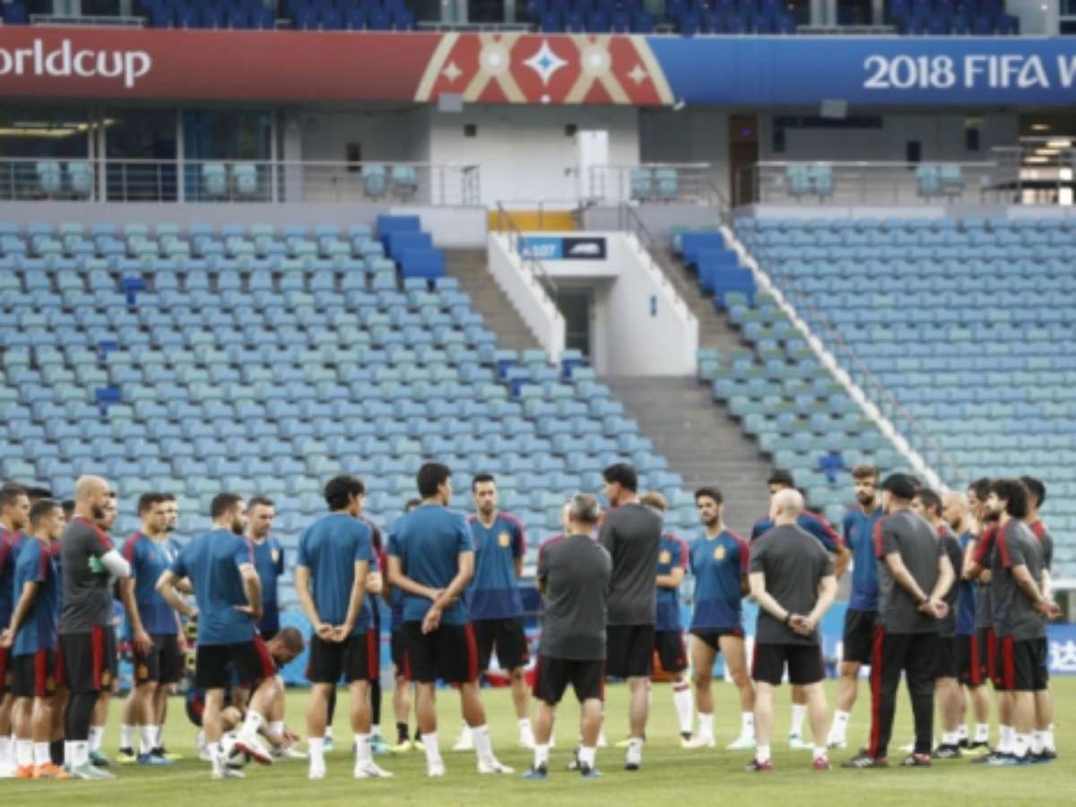 O último treino da seleção espanhola antes da estreia na Copa do Mundo foi marcado pelo clima de mistério. Com apenas 15 minutos de atividade aberta para a imprensa, o novo técnico Fernando Hierro manteve o mistério sobre o time que enfrenta Portugal, na próxima sexta-feira (15), às 15h, em Sochi.