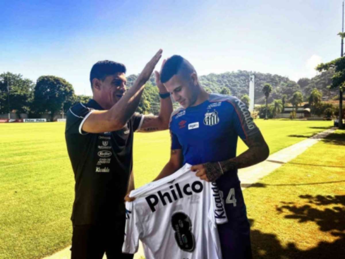 Volante do Santos presenteou Renatinho com sua camisa da Libertadores, com a qual marcou seu primeiro tento com a 8, contra o Defensa y Justicia, na Argentina