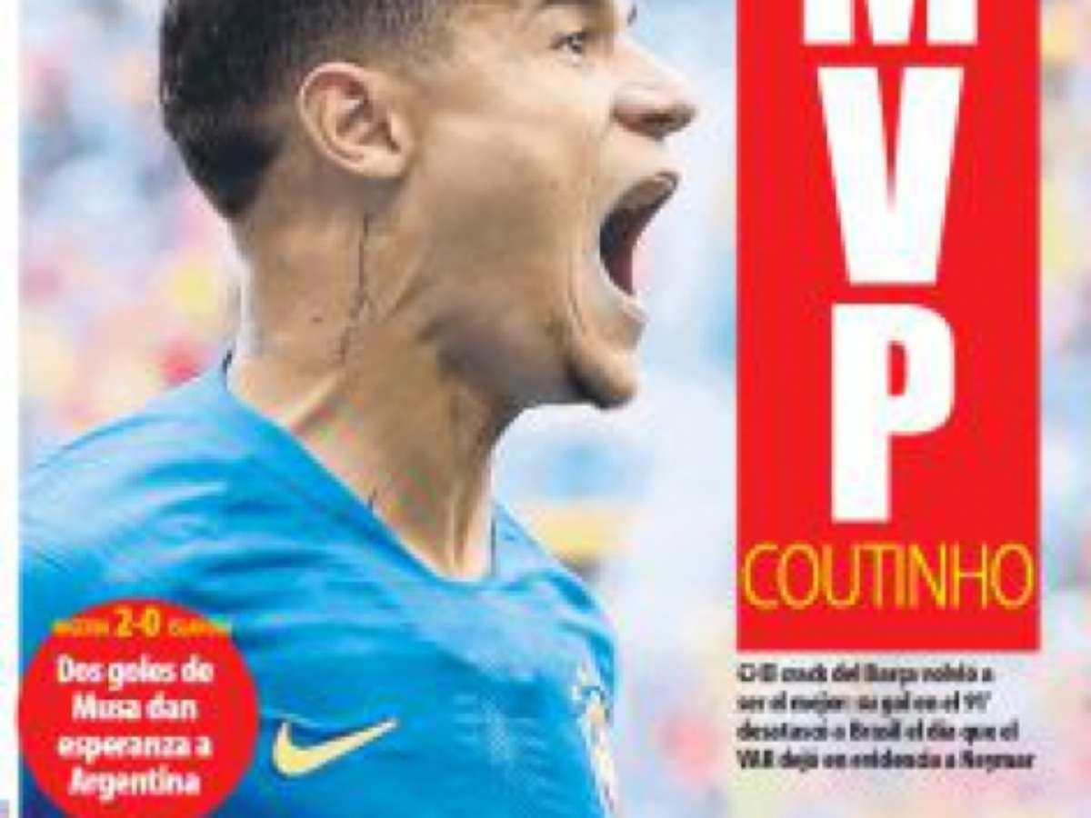 O jornal espanhol "Mundo Deportivo" destacou a grande atuação do brasileiro Philippe Coutinho. Em destaque a chamada que o classifica como jogador mais valioso.