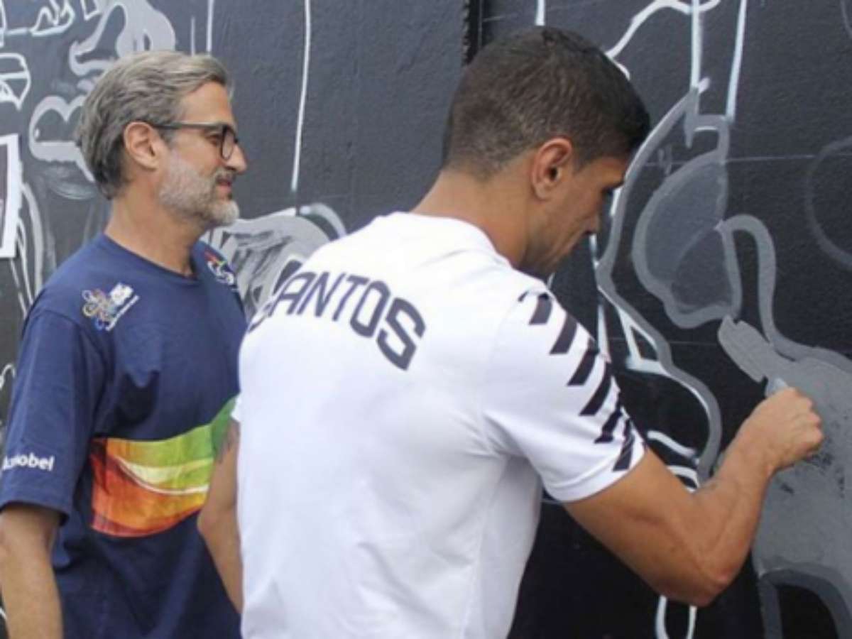 A restauração é feita pelo artista Paulo Consentino, quem fez as primeiras pinturas, e faz parte das comemorações dos 105 anos do Santos. Além de ídolos, rostos de torcedores serão eternizados no muro, como já acontece na parte da Avenida Waldemar Leão.