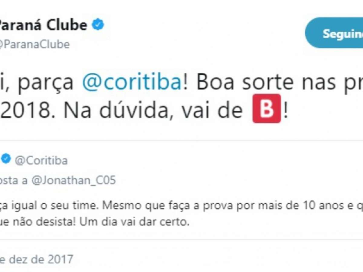 Em outra provocação, o Paraná aproveitou uma resposta do Coritiba a um torcedor do Tricolor em novembro desse ano para se vingar. Ironizou as 'dicas para o Enem' do Coxa, desejou boa sorte nas provas de 2018 e mandou marcar a letra B, caso fiquem na dúvida.