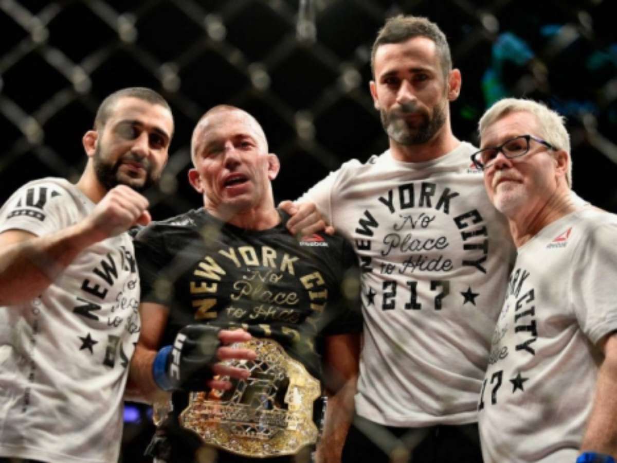 Aos 36 anos, St-Pierre deixou a aposentadoria após quase quatro anos para disputar o cinturão dos médios. O canadense finalizou Michael Bisping no UFC 217 e conquistou o título até 83,9kg. Recentemente, Dana White revelou que o lutador contraiu uma úlcera no intestino e terá de cuidar de sua saúde.