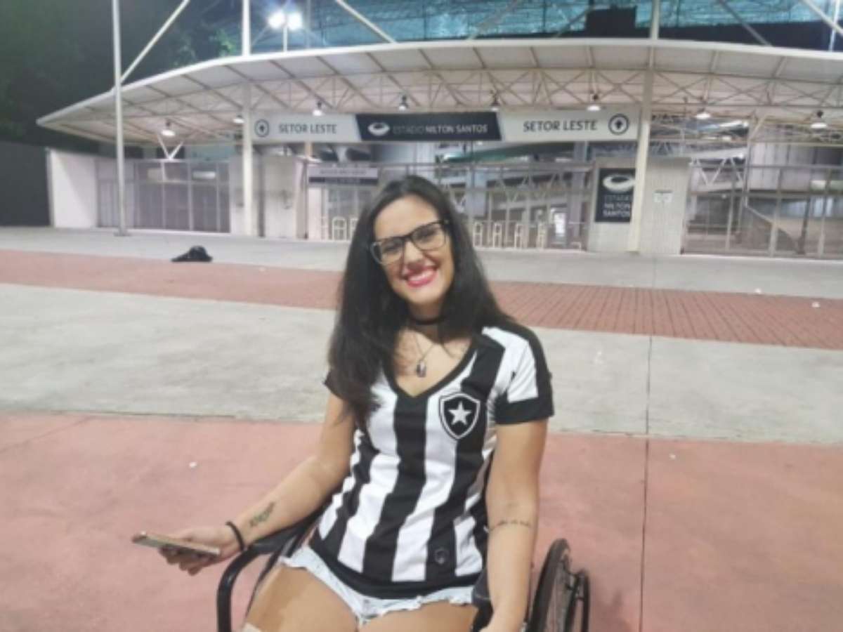 Raquel, com atrofia muscular nas pernas, não foi liberada pelo médico para ir ao jogo contra o Corinthians de cadeira de rodas. Mas a paixão pelo Botafogo falou mais alto