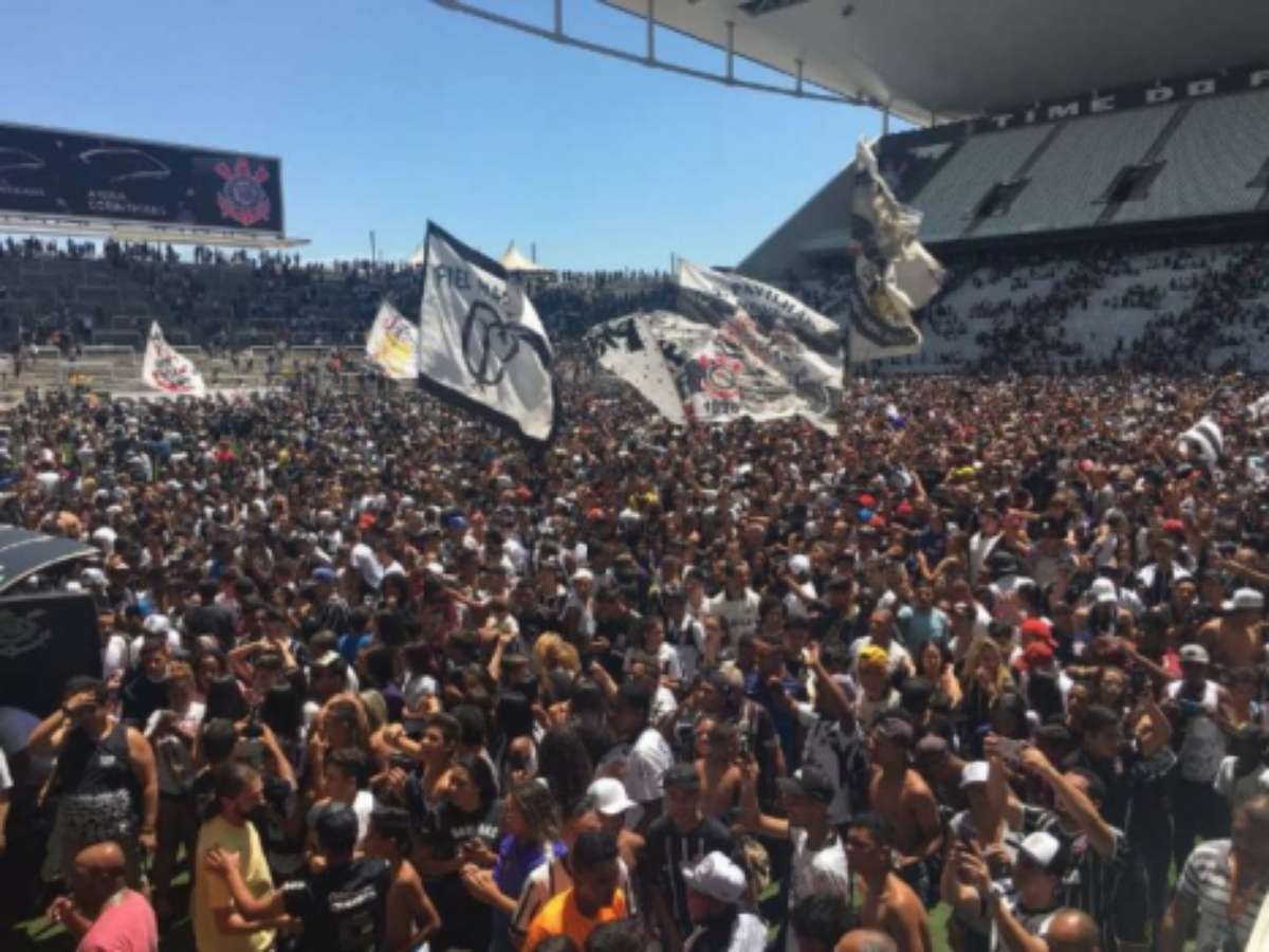 Os sinais da grande invasão foram sendo dados durante a atividade. Com os atletas ainda em campo em uma atividade leve, alguns torcedores tentaram se aproximar para o contato, mas foram rapidamente contidos pelos seguranças. No entanto, quando o treino foi totalmente encerrado e os jogadores já estavam nos vestiários, não houve jeito. A Fiel tomou conta e a festa tomou proporções impossíveis de serem freadas.