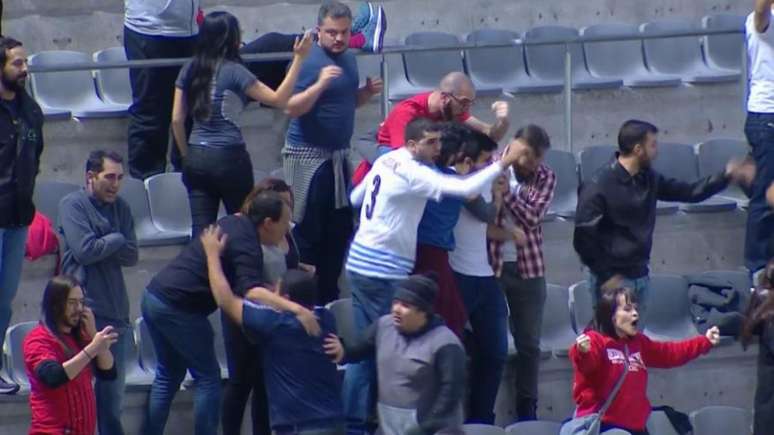 Antes da partida, os torcedores são-paulinos foram para as cadeiras que antes recebiam os visitantes, foram notados pela organização da partida e receberam orientação de seguranças do estádio.