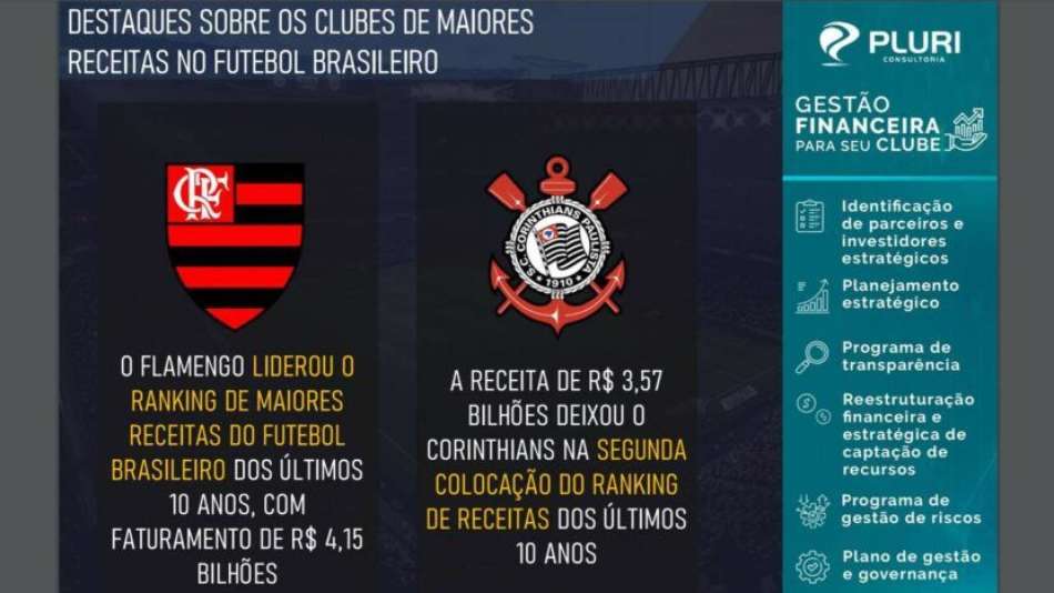 Os clubes brasileiros com maior receita de 2010 a 2019