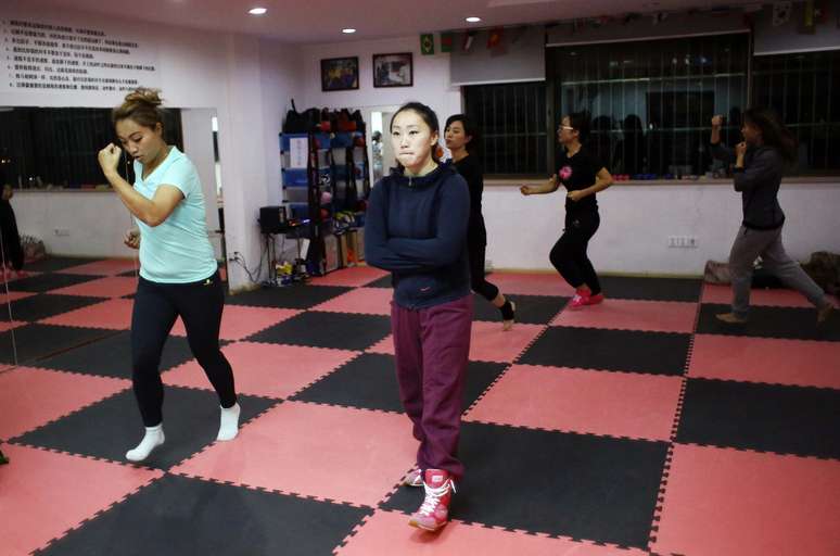 Mulheres participam de aula dentro do Clube de Boxe das Princesas, o primeiro exclusivo para mulheres na China.