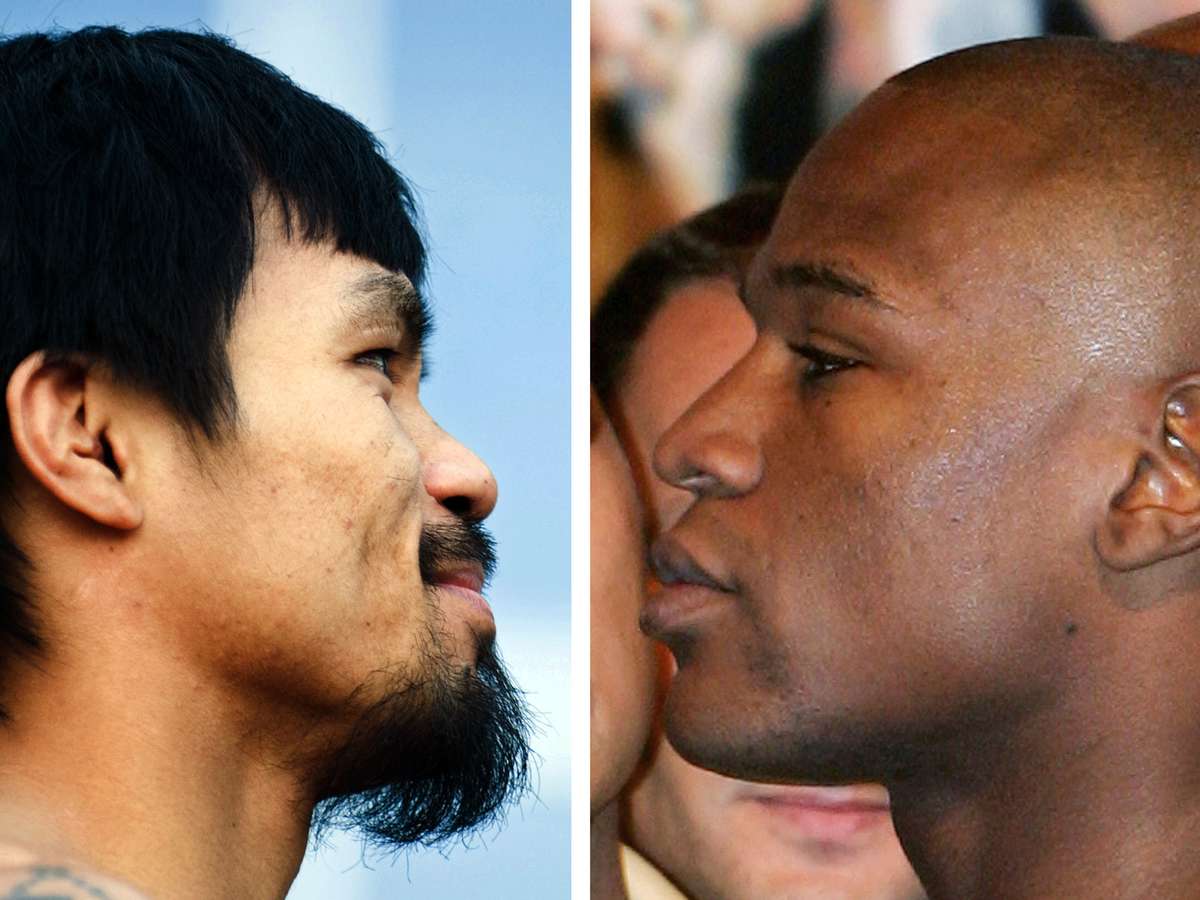Pacquiao, que hoje em dia é também membro do parlamento das Filipinas e possível candidato à presidência do país, foi o primeiro campeão mundial em oito diferentes categorias de peso. Ele possui um cartel de 61 lutas, com 54 vitórias, dois empates e cinco derrotas. Mayweather, invicto nas 45 vezes que subiu ao ringue, também possui conquistou oito cinturões na carreira.