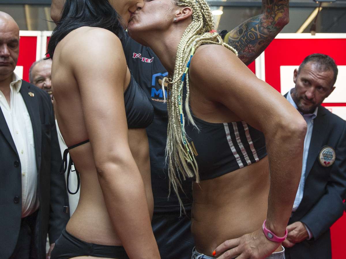 Em vez de trocar farpas e provocações com sua próxima adversária no boxe, a lutadora sueca Mikaela Lauren surpreendeu nesta sexta-feira ao adotar diferente estratégia durante a pesagem para o confronto com a alemã Christina Hammer: no momento de encará-la, deu um beijo na adversária. A cena foi protagonizada em Dresden, na Alemanha, onde o combate será realizado no sábado