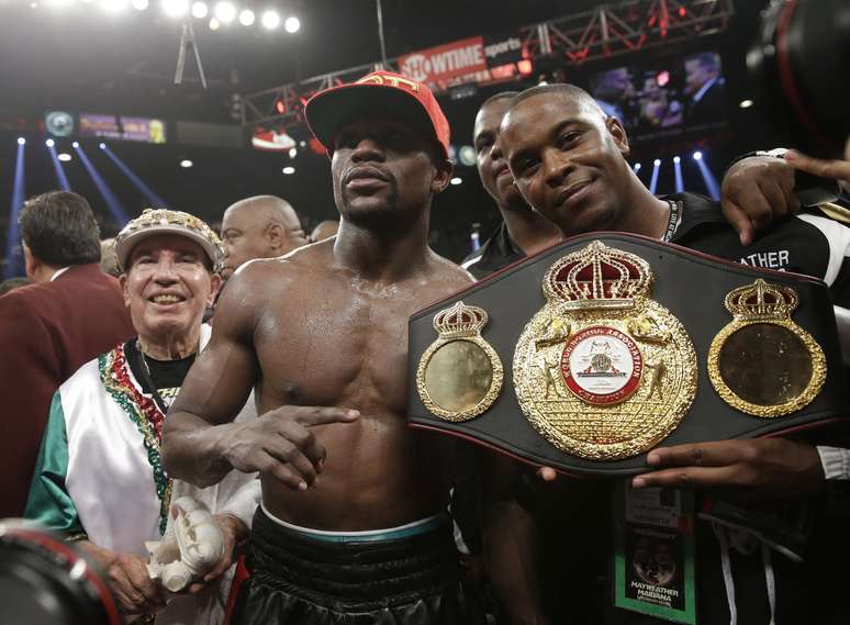 Floyd Mayweather Jr. unificou com sucesso os cinturões do Conselho Mundial de Boxe (WBC) e da Associação Mundial de Boxe (WBA) pelo peso meio-médio (até 67 kg) na noite deste sábado