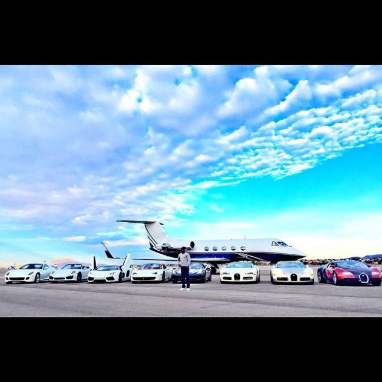 Campeão invicto no boxe e personificação da ostentação no esporte, Floyd Mayweather usou a sua conta no Instagram para exibir suas valiosas máquinas e fazer um convite aos seus seguidores. “Quem quer vir aqui e brincar?”, questionou Mayweather depois de listar os modelos de seus oito carrões e de seu jatinho, coleção que chamou de "mundo de brinquedos".