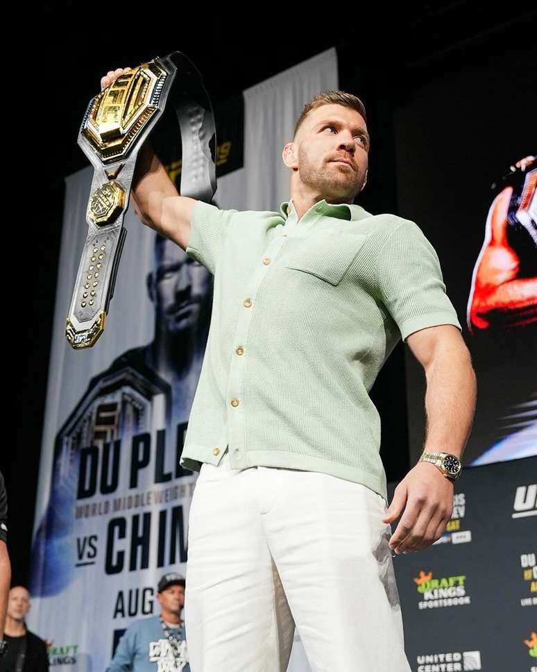 Dricus du Plessis defenderá neste sábado (16) o seu cinturão dos médios do UFC em Chicago contra Khamzat Chimaev. O sul-africano será mais um a tentar vencer o até agora imparável russo para tentar manter-se como campeão da categoria até 84kg.