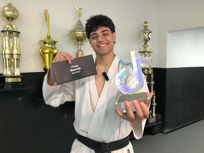 O karateca Matheus Albino, 21, venceu o TikTok Awards de 2025 na categoria #TikTokEsportes, amplamente dominada por criadores do futebol