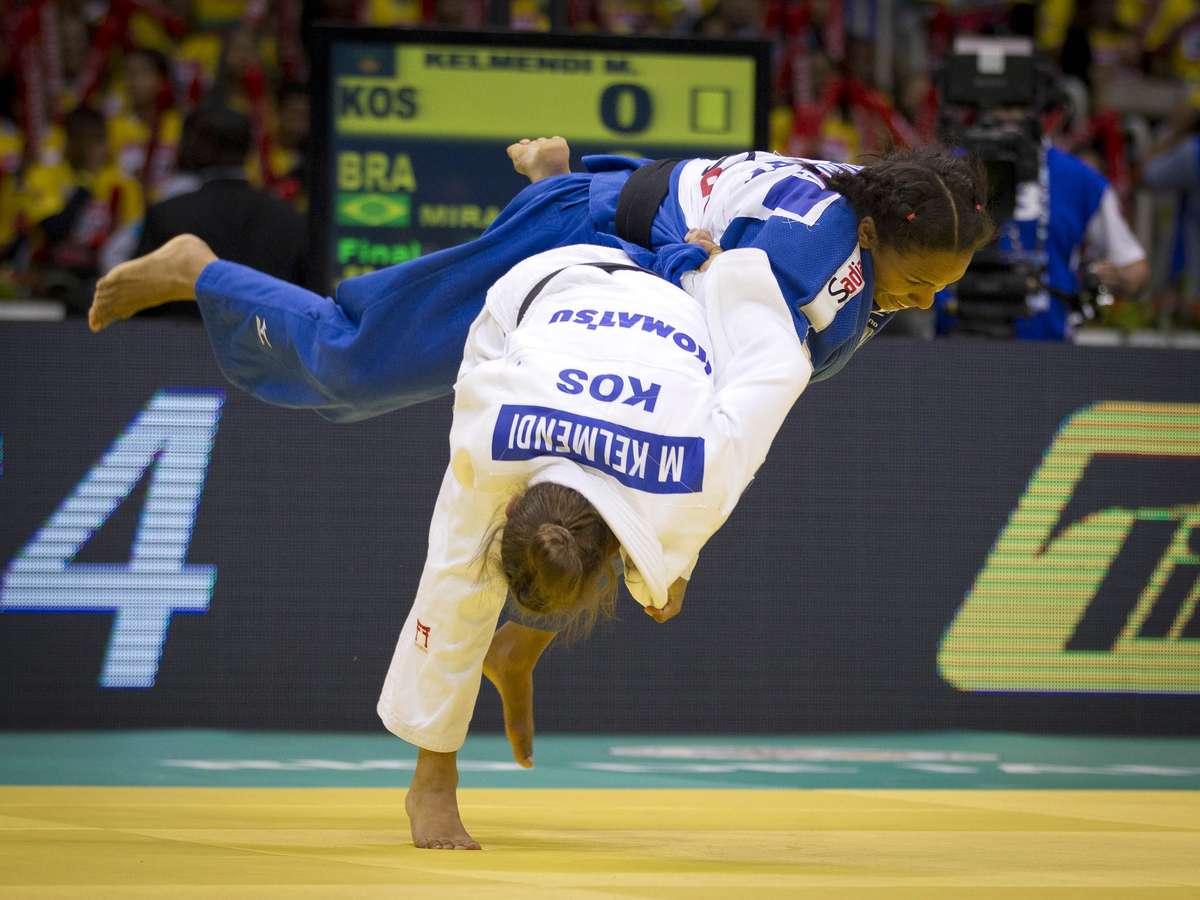 O Brasil conquistou sua segunda medalha no Mundial de Judô do Rio de Janeiro. Nesta terça-feira, no Maracanãzinho, Érika Miranda foi finalizada pela kosovar Majlinda Kelmendi e ficou com a prata da categoria meio-leve (até 52 kg). O primeiro pódio foi obtido por Sarah Menezes, que venceu o bronze entre o peso ligeiro.