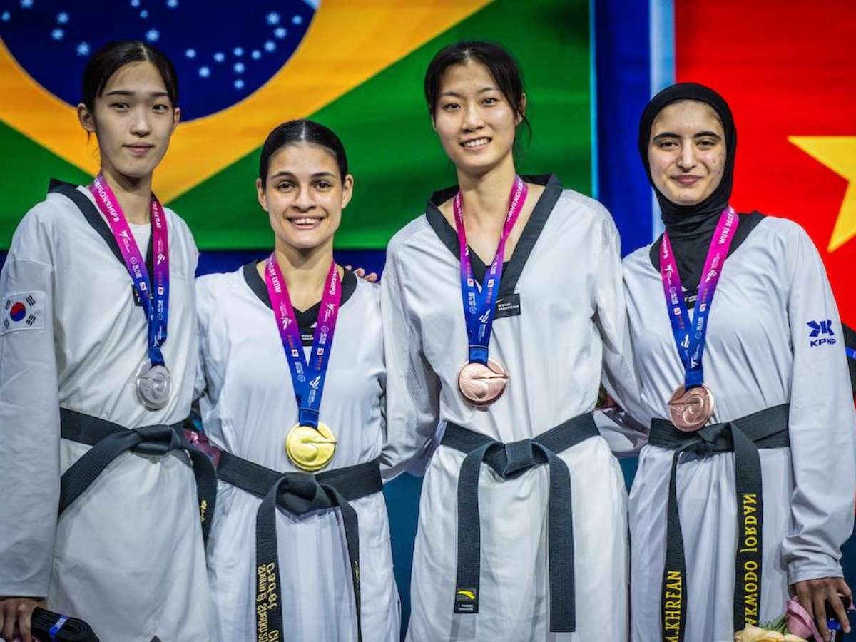 Maria Clara Pacheco, de 22 anos, conquistou a medalha de ouro no Mundial de Taekwondo, nesta sexta-feira (24), em Wuxi, na China, e colocou o Brasil no pódio 20 anos após o título inédito de Natália Falavigna.
