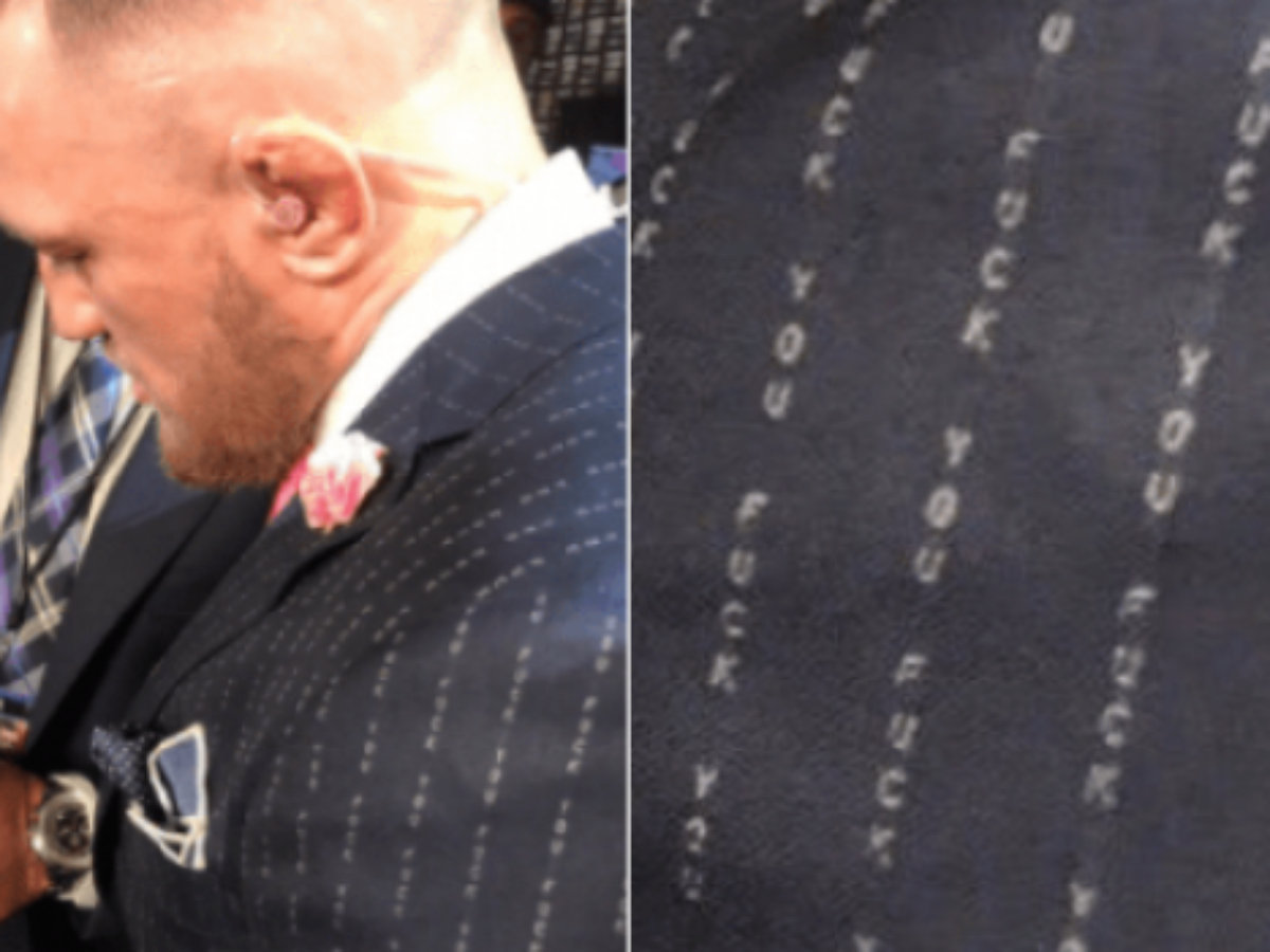 Conor McGregor é, de fato, um artista quando o assunto é provocação. Não satisfeito em alfinetar os rivais com as palavras, o astro irlandês encontrou uma forma diferente de atacar o rival Floyd Mayweather. No primeiro dia de turnê mundial da superluta com o rival, o campeão do UFC usou um terno especial com uma mensagem subliminar: "F... -se".