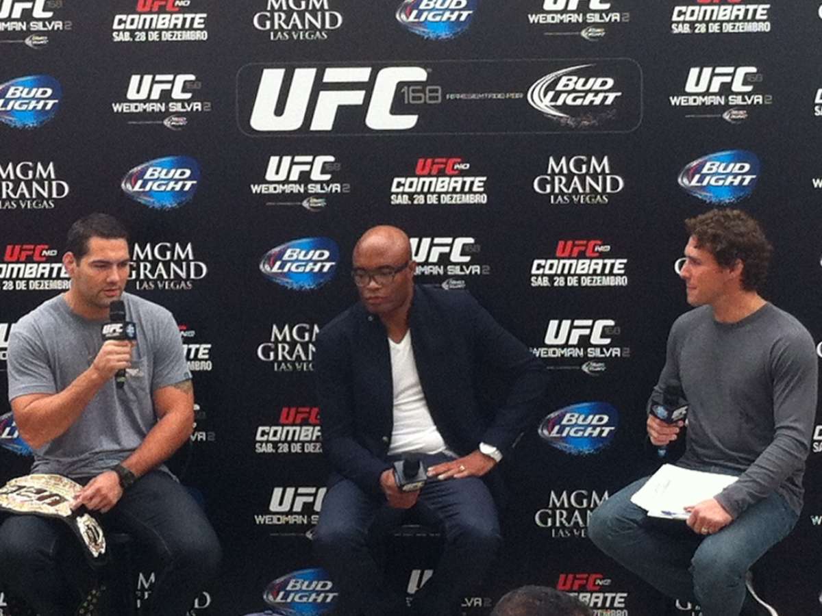 "Foi muito bom tocar nesse assunto. Realmente eu estava machucado. Até agora não tinha sido tocado nesse assunto. Mas isso não é desculpa para a minha performance. Eu lutei abaixo do meu potencial, eu estava 85%. A lesão foi um pouco abaixo da costela, que eu tinha fraturado antes da primeira luta contra o Sonnen. Hoje estou bem. Cansado, mas feliz. A costela já está bem. Não vou falar mais que isso pode ser usado contra mim", brincou Silva.