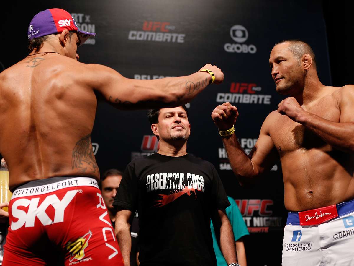 Sem rivalidade nem provocações, Vitor Belfort e Dan Henderson bateram o peso nesta sexta-feira, em Goiânia. Os dois farão uma revanche pelo UFC Fight Night 32