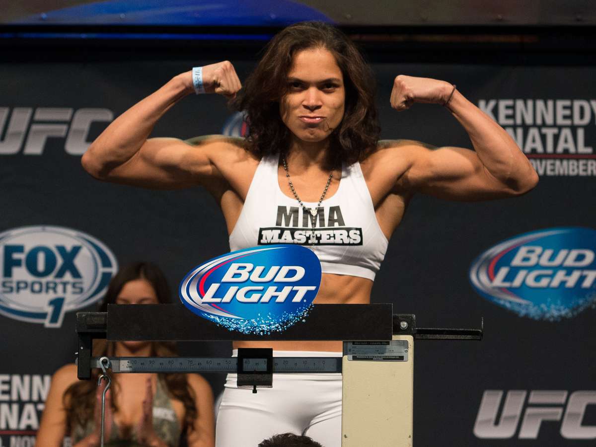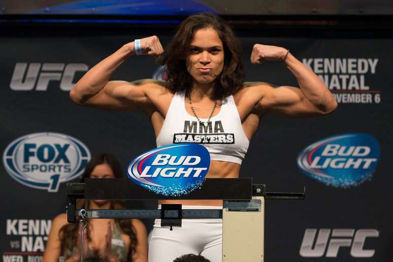 Já a lutadora, que está pesando 61,7 kg, fará combate contra Germaine de Randamie. Amanda subiu no palco da pesagem com a camisa da Seleção Brasileira e foi bastante aplaudida. Na hora de encarar a adversária, ela ainda se agachou rapidamente, como se imitasse uma leoa - este é seu apelido no MMA.