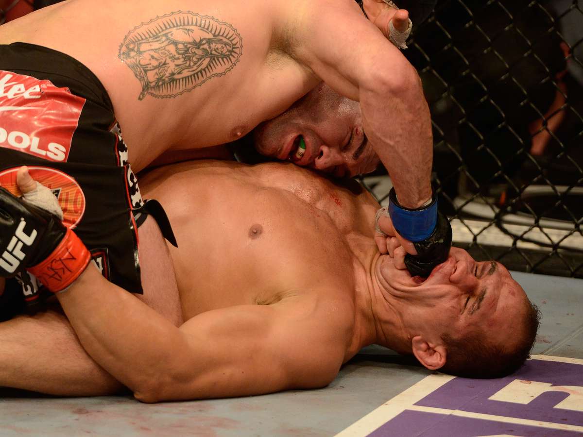 Condit vence Diaz A luta valia o cinturão interino dos pesos meio-médios, já que Georges St-Pierre estava machucado. Tudo indicava que Nick Diaz venceria e faria uma esperada luta contra o canadense. Mas Carlos Condit conseguiu uma polêmica vitória e ficou com o título até perder para St-Pierre no final deste ano. Agora finalmente poderá acontecer, em março de 2013, o combate entre Diaz e o campeão