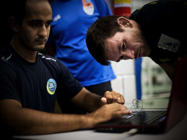 A tecnologia realmente é discreta e passa desapercebida em um primeiro olhar. Uma corda muito fina liga os aparelhos de musculação a um computador, que mede velocidade, força e alcance dos atletas. Os resultados aparecem na tela de forma instantânea, por isso o treinador pode corrigir os movimentos na hora. Demian faz o exercícios e corre para ver na tela como foi seu desempenho. "É uma lapidação importante antes das lutas", avaliou.