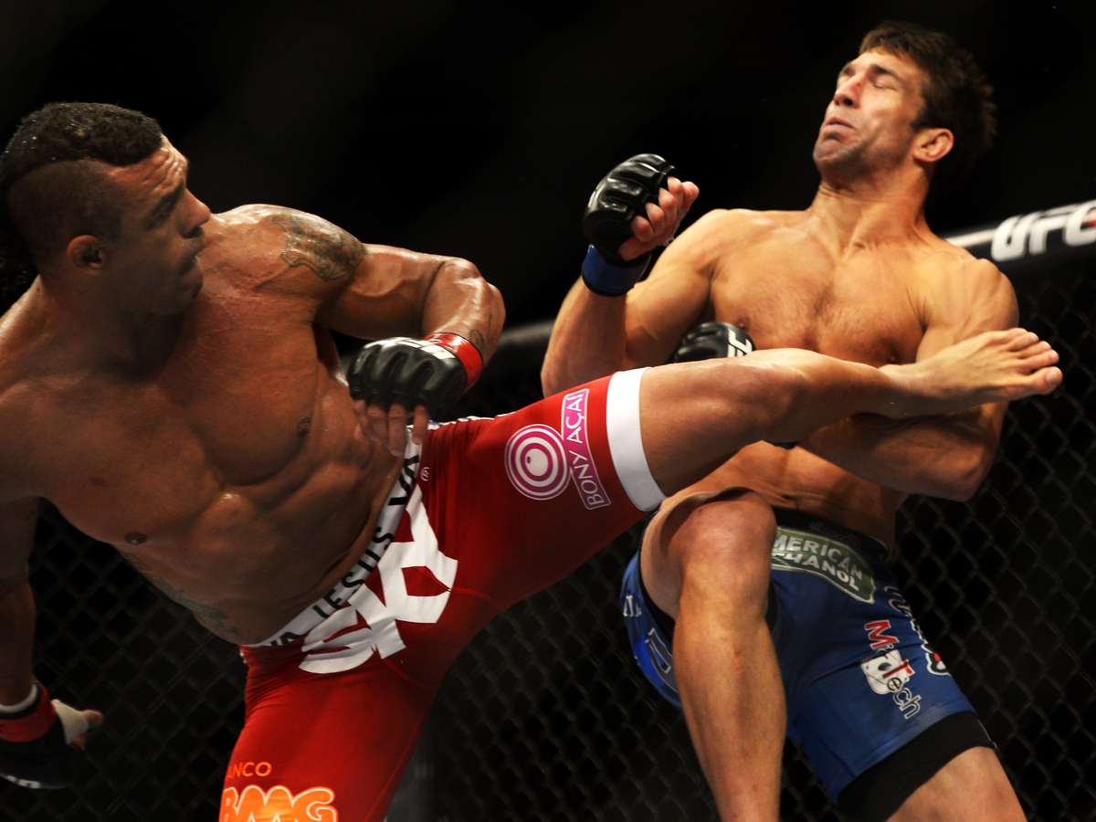 Vitor Belfort conseguiu um chute rodado impressionante e nocauteou Luke Rockhold na luta principal do UFC em Jaraguá do Sul neste sábado