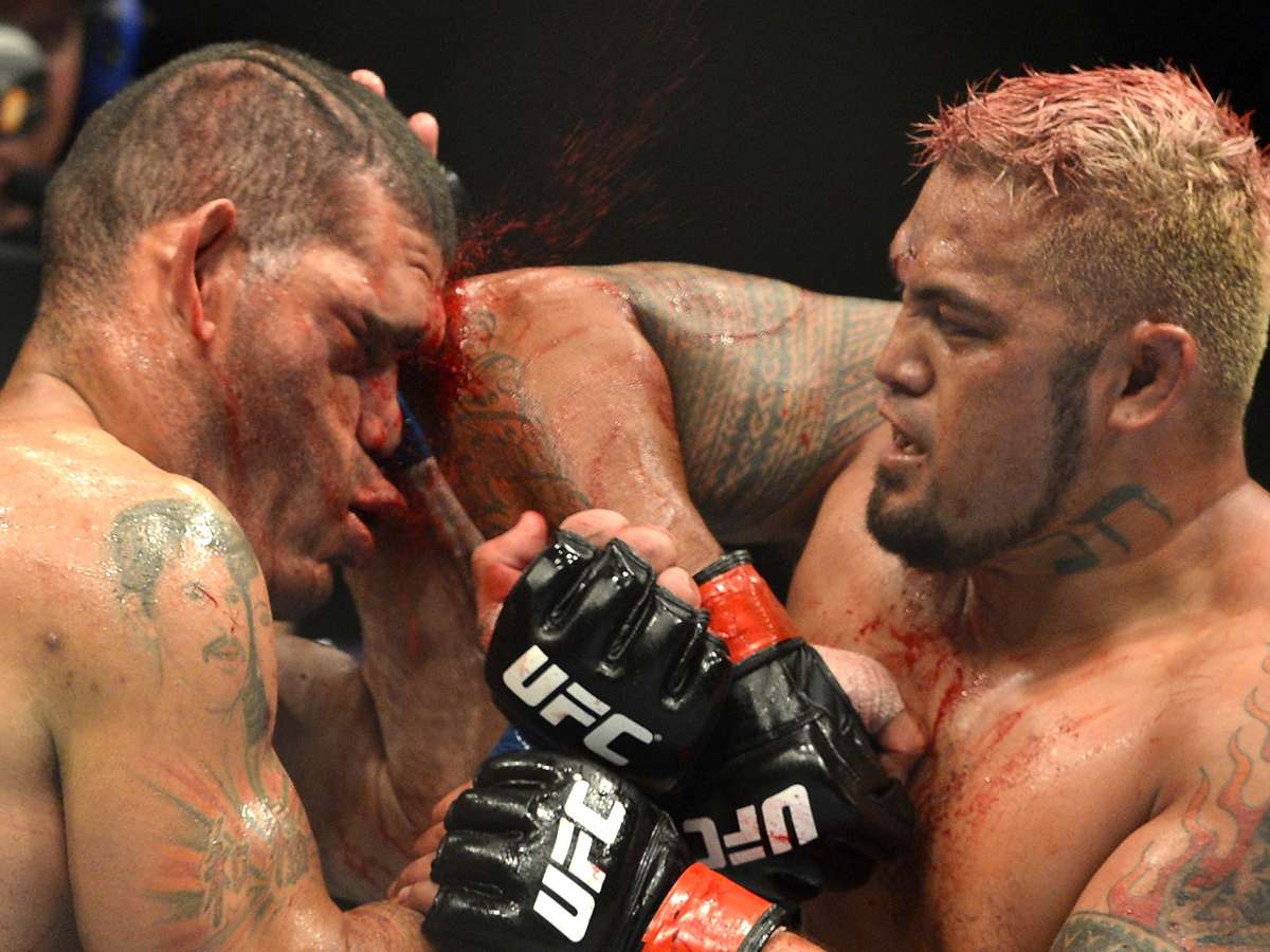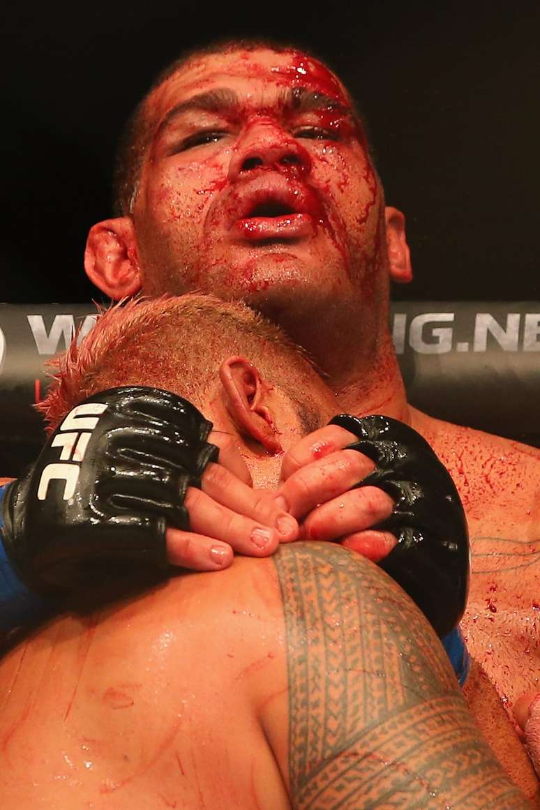 Os pesos pesados Antônio Pezão (esq.) e Mark Hunt fizeram uma luta em que ninguém merecia sair como perdedor, no UFC Fight Night 33, na Austrália. E de fato dois juízes deram empate no duelo, que teve sangue e porrada quase na mesma quantidade