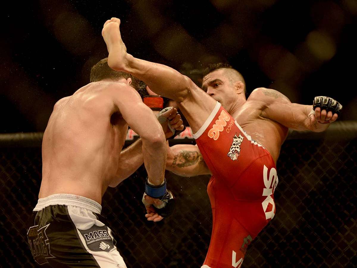 Vitor Belfort garantiu a vitória no main event do UFC SP na noite deste sábado contra Michael Bisping, em duelo pelos pesos médios, graças a um acrobático chute de esquerda na cabeça do inglês no segundo round. Bisping sofreu a queda e levou uma sequência de socos que selou a vitória do brasileiro. Confira, em detalhes, o golpe que decidiu o combate: