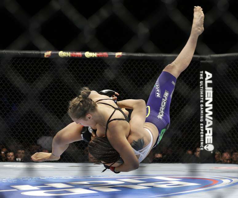 Após uma sequência de socos e uma joelhada, a americana aplicou um ippon, tradicional golpe de judô, para derrubar Alexis e finalizar a luta com vários golpes no rosto da desafiante.