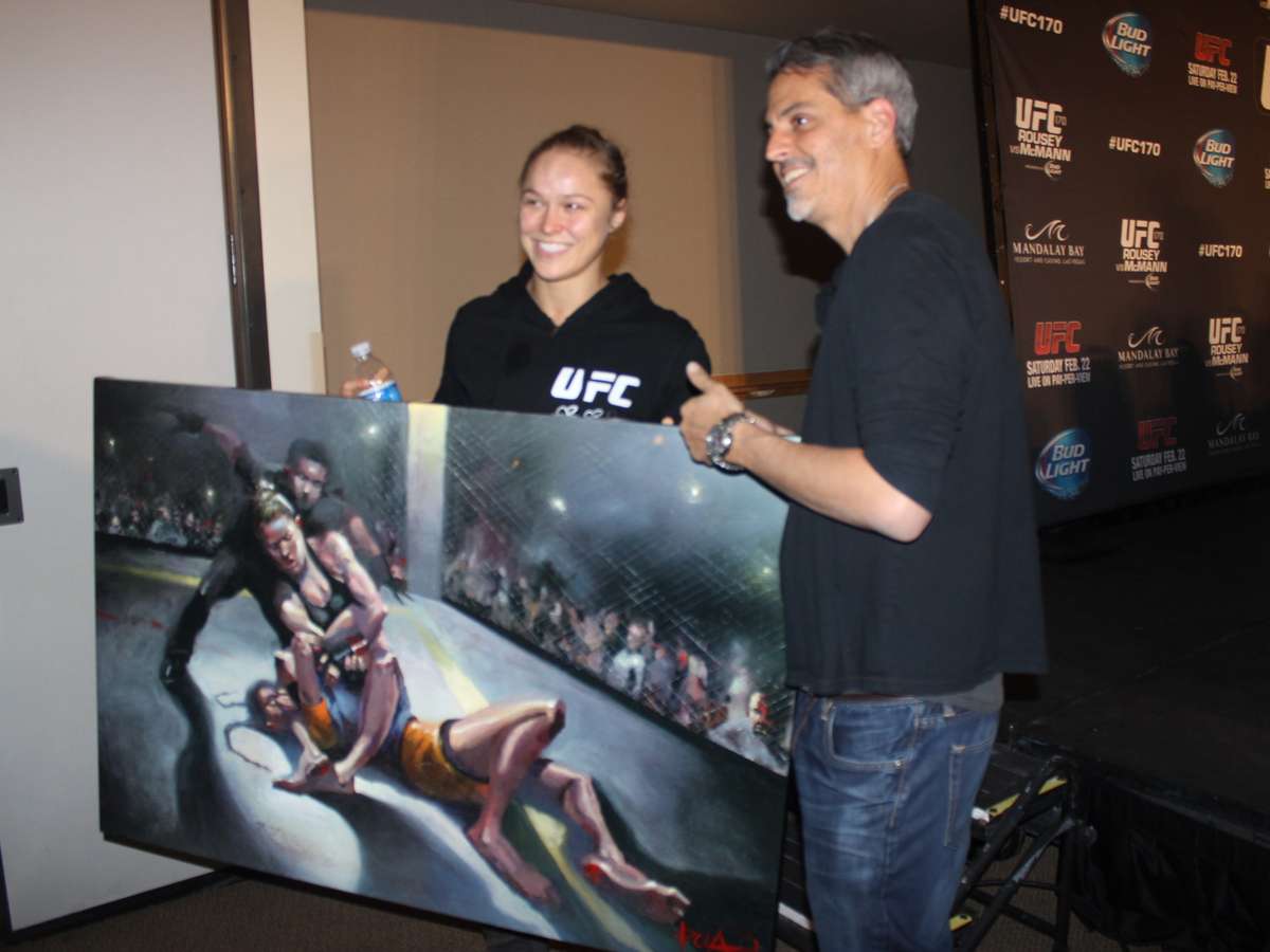 — Cris Cyborg (@criscyborg) February 23, 2014Durante esta semana, a brasileira anunciou que tentará baixar de peso e aproveitou neste sábado para desafiar Ronda: "Estou feliz que Ronda Rousey venceu. Agora eu posso dar uma surra nela em dezembro- Faça acontecer, papai Dana White", escreveu a lutadora no Twitter. Cris tem lutado pela organização feminina Invicta FC.