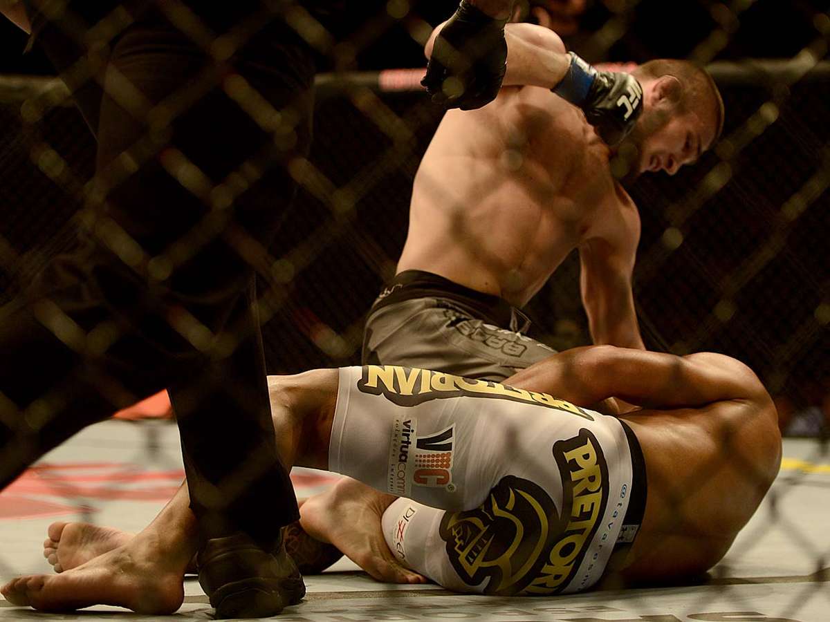 Peso leve: Thiago Tavares x Khabib Nurmagomedov: Nurmagomedov, nocaute (upper com cotoveladas)) no 1º round (1min55s)