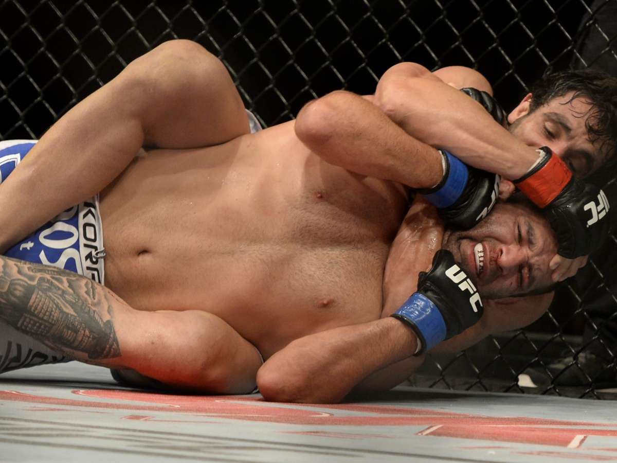 A luta entre Marcos Pezão e Rick Monstro foi a primeira entre lutadores do The Ultimate Fighter Brasil 3 deste sábado e a mais rápida do card preliminar. Eliminados na semifinais do reality show, os dois começaram com muita explosão e "Pezão" não deu chances ao seu rival. Com apenas 20 segundos, o atleta treinado por Chael Sonnen acertou uma bela joelhada, que derrubou Rick "Monstro", e finalizou a luta no ground and pound, desferindo vários golpes enquanto seu adversário estava no chão.