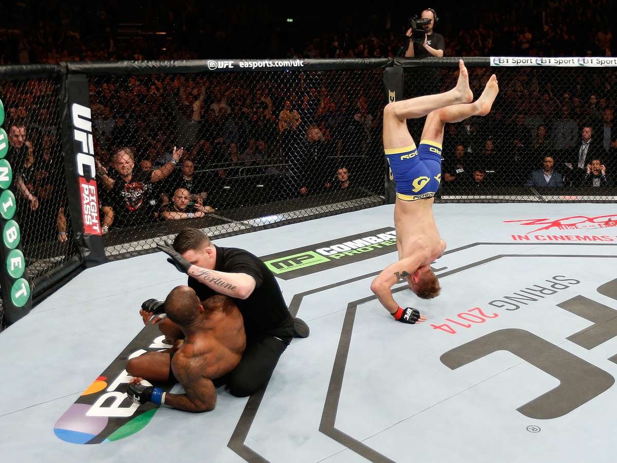 O sueco Alexander Gustafsson conseguiu uma vitória contundente sobre o inglês Jimi Manuwa neste sábado, no UFC Fight Night 37, em Londres, e pediu no octógono uma revanche com o campeão dos meio-pesados, Jon Jones. O atleta escandinavo venceu o combate no segundo round com um nocaute técnico, após interrupção do árbitro.