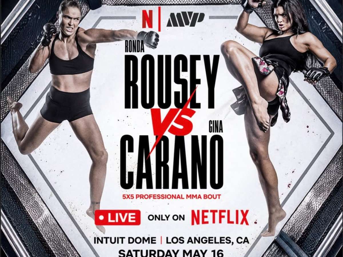 A entidade e a mídia especializada anunciaram nesta terça-feira (17) que Rousey lutará contra Gina Carano no dia 16 de maio., em Los Angeles, com transmissão ao vivo pela Netflix. Este será o primeiro evento da empresa nas artes marciais mistas, com a MVP se dedicando desde a sua formação a realizar lutas de boxe. O duelo será na divisão dos penas, segundo a entidade.