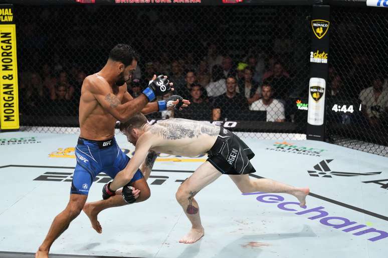 O UFC chegou neste sábado (5) à cidade de Nashville (EUA). A capital da música country nos EUA recebeu o octógono mais famoso do mundo para um duelo importante na categoria dos galos entre Cory Sandhagen e Rob Font,