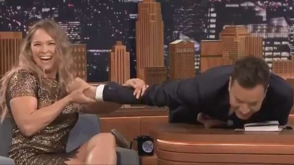 Lutas Apresentador grita de medo com golpe de Ronda Rousey Exibir comentários Compartilhar Lutadora do UFC mostrou ao apresentador Jimmy Fallon como é o seu famoso golpe; a próxima luta de Ronda Rousey é contra a brasileira Bethe Correia, no dia 1º de agosto – imagens: YouTube Terra Publicidade