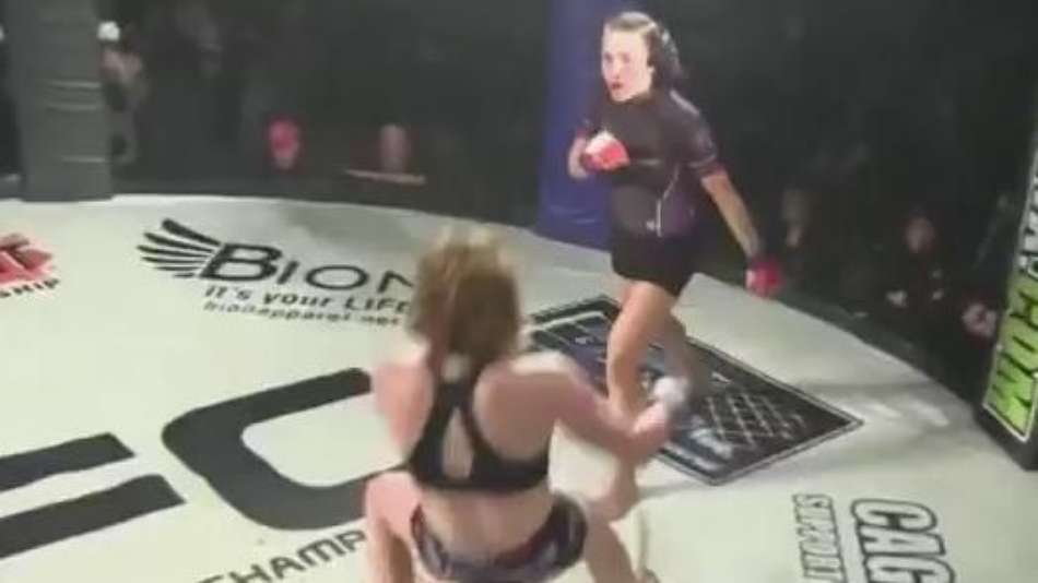 Lutas Lutadora de MMA nocauteia com soco giratório impressionante Exibir comentários Compartilhar Jessica Middleton acertou raro golpe em Holly Torrez no torneio BlackOut Fighting Championship, em Kansas City, nos Estados Unidos Reprodução Publicidade
