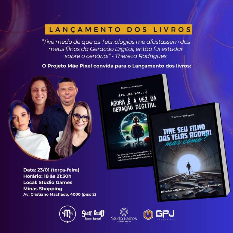 O lançamento dos livros acontecerá em parceria com empresas da Capital Mineira como Studio Games Minas Shopping, Staff Guild Gamer Suporte e GPJ Informática.