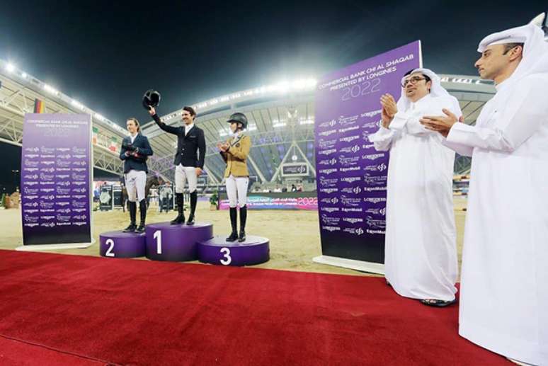 Com a vitória, Marlon conquistou 49 mil euros em premiação de um total de 140 mil em jogo. A principal disputa - GP CHI AL Shaqab - Longines, a 1.60m, acontece neste sábado às 11h45 (de Brasília), Marlon larga com VDL Edgar M e será o 15º conjunto entre um total de 43.