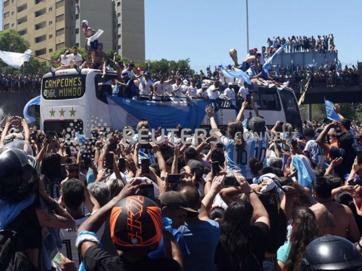 Por volta do meio-dia, milhões já haviam se reunido no centro de Buenos Aires, com as principais ruas da capital fechadas para o desfile. As pessoas erguiam bandeiras de Messi e do falecido ídolo Diego Maradona, tocavam instrumentos e subiam em postes de iluminação e pontos de ônibus.