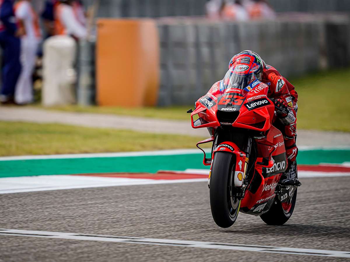 Francesco Bagnaia foi discreto durante todos os treinos livres, sempre distante das primeiras posições. O mesmo se aplicava para o Q2 da classificação, mas uma grande volta nos minutos finais, em 2min02s781, premiou o italiano com mais uma pole, dessa vez no GP das Américas, em Austin.