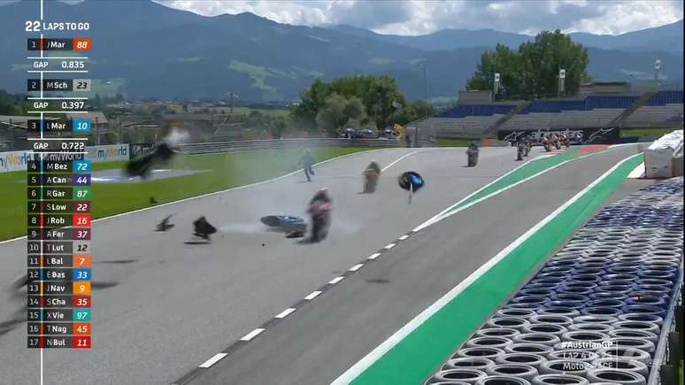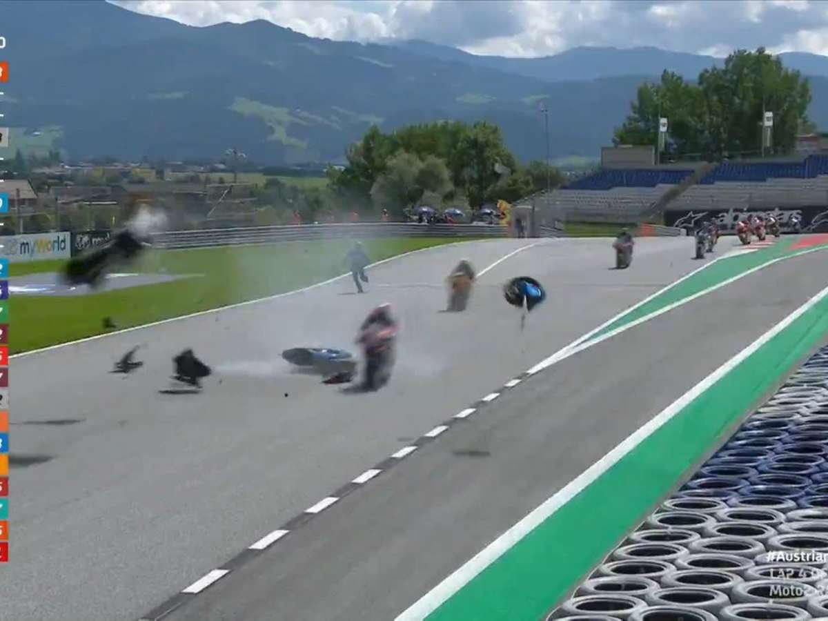 O dia da Moto2 começou com um susto no Red Bull Ring. Ainda na quarta volta, a prova precisou ser interrompida em bandeira vermelha após uma queda de Enea Bastianini resultar em um forte acidente com Hafizh Syahrin.